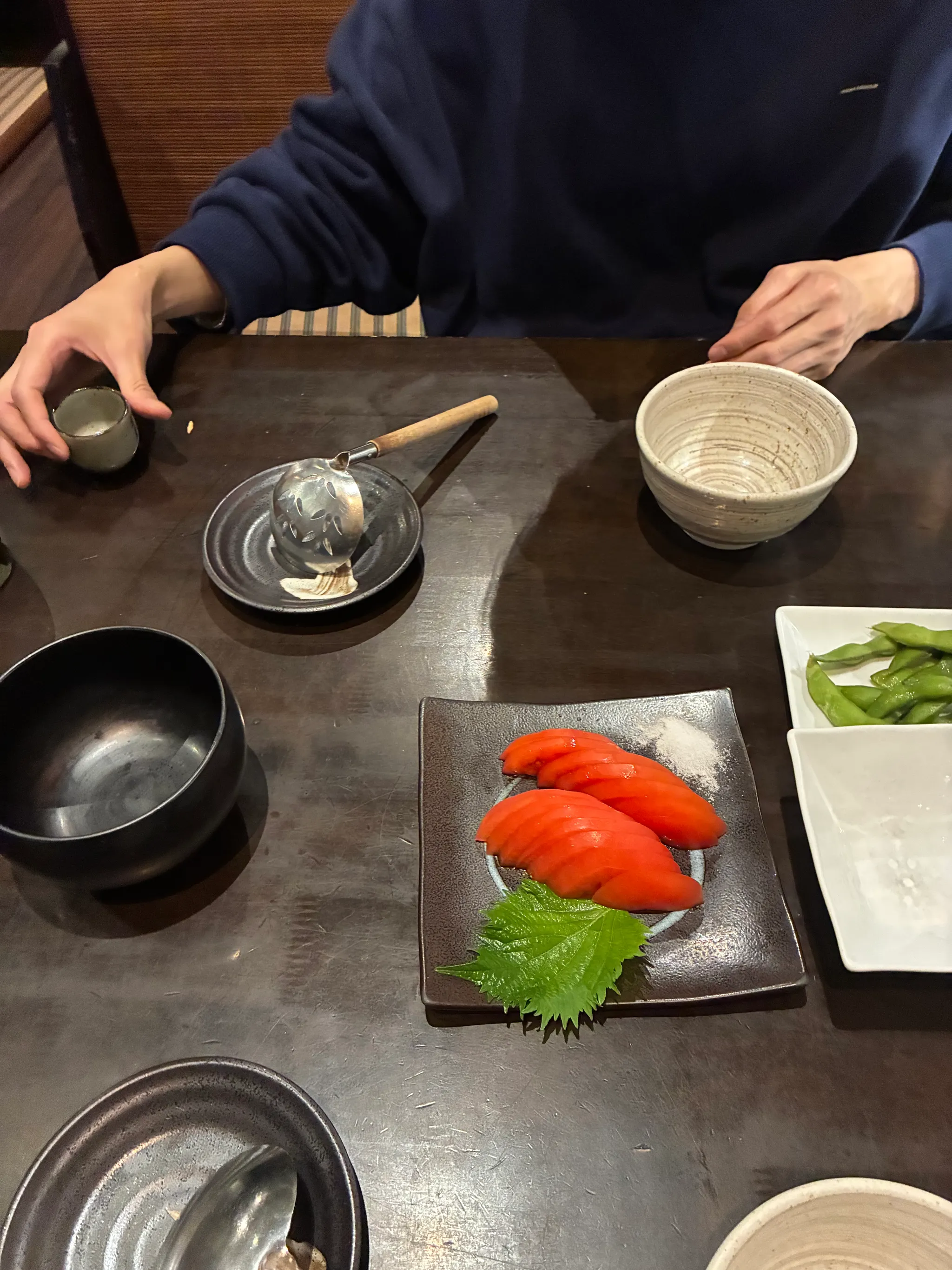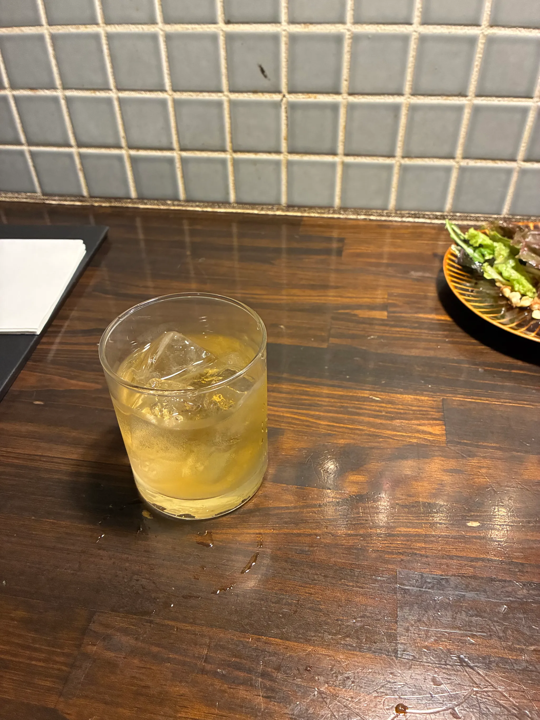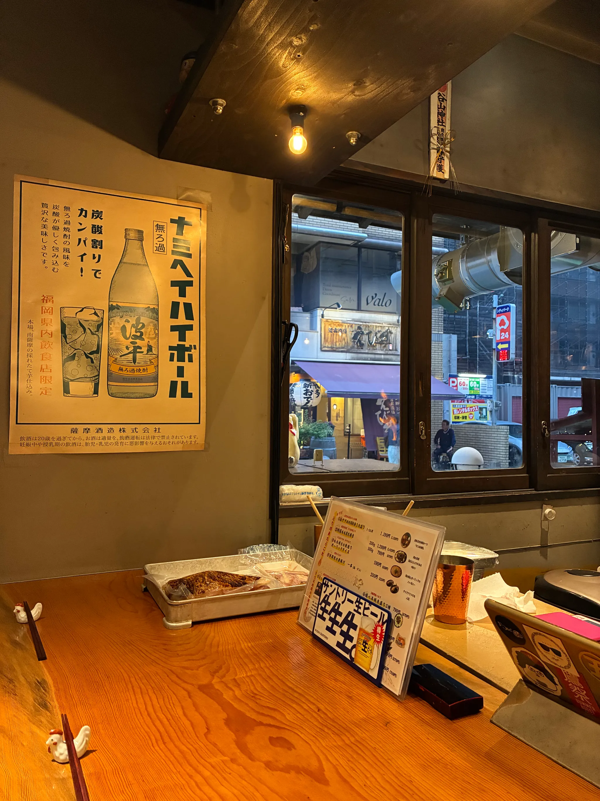 저녁에 예약한 집에 일찍 왔음에도 불구하고 친절하게 맞이해 줬다. 현지인들만 가득한 분위기. 그럼에도 분위기가 좋아서 술이랑 같이 술술 들어간다. 벽 포스터에 붙어 있던 하이볼이 먹고 싶어서 한 잔 주문, 그 이후에 니혼슈 한 잔 주문. 내가 천천히 마시길 바랐는지 물도 중간에 줬다.